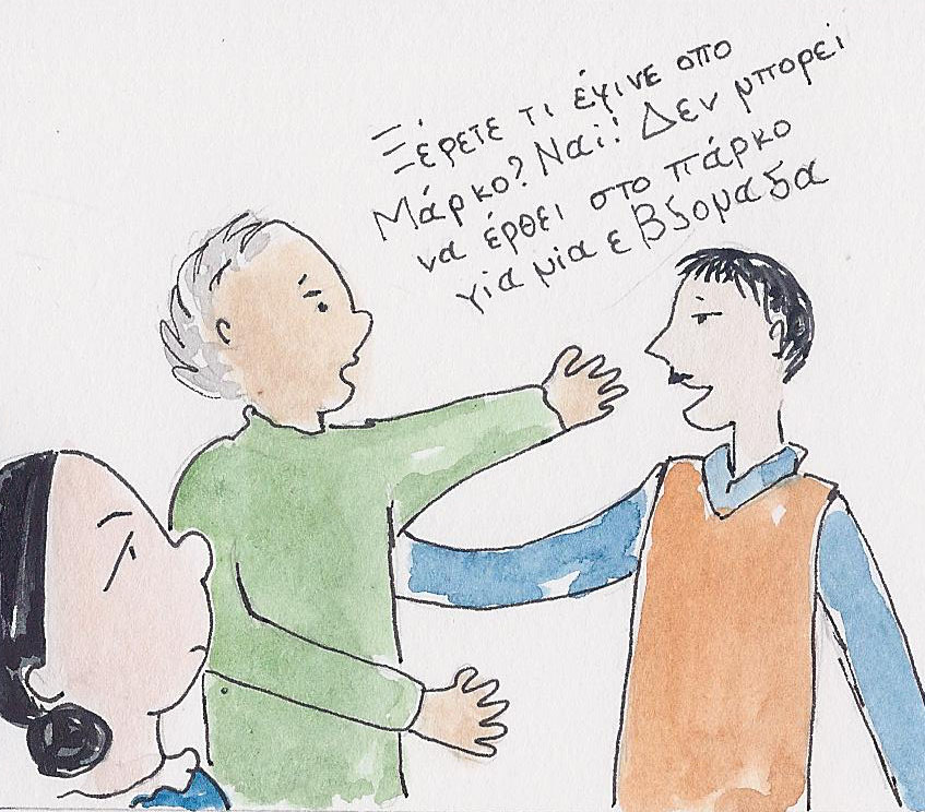 “Do you know what happened to Marco? Yes! He cannot come to the park for a week.”
