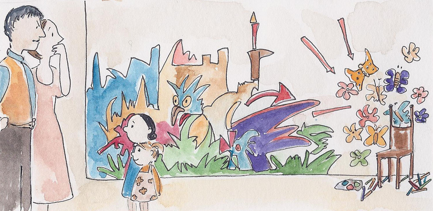 I don’t know why my parents didn’t recognize two talented Muralists in the making, but the fact is that they were not amused at all. At all. I think the only reason I escaped the corner punishment was because it was bed time.