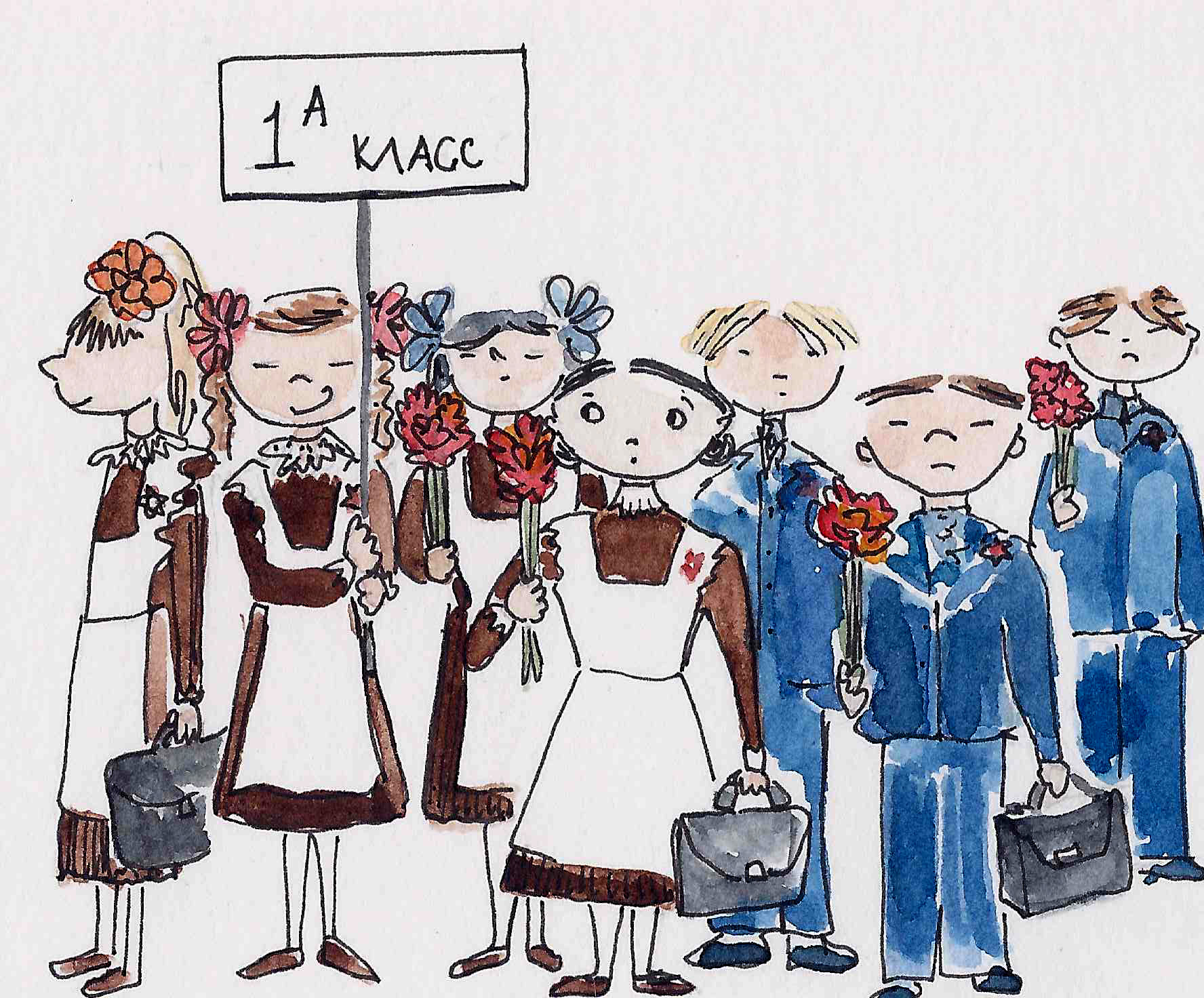On our first day of school, a symbolic September 1st ( I can still remember the panic that swept all over me), we wore our celebratory outfits with white aprons.