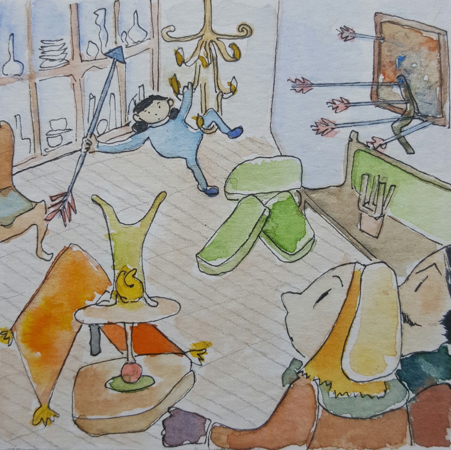 By the time my parents finally got home, we had created our own Jungle and were happy hunting the evil snake.(dad’work tie)