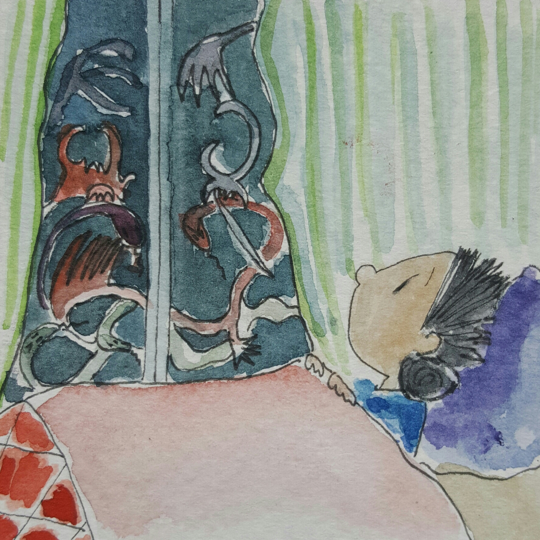 Branches and leaves of the tree knocking on my window suddenly became venomous Snakes and Wild Beasts ready to break throw the window and attack me!